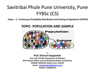 The document provides an overview of population and sample in statistics, highlighting the importance of relevant data for valid outcomes. It explains various types of populations and sampling methods, including simple random sampling and non-probability sampling techniques. Additionally, it offers examples and case studies to illustrate the concepts discussed.
