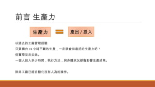 ( 2013/5/1~2014/5/1 )以親身的實驗,進行生產力相關研究,在他精挑細選嘗試的各種