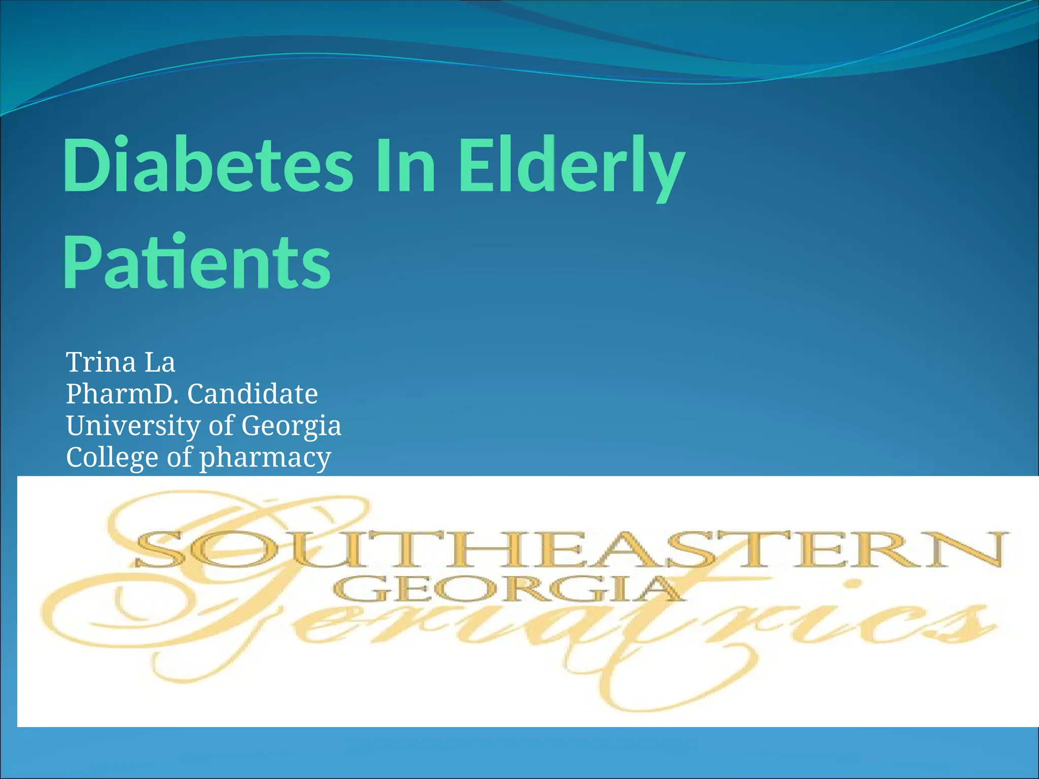 The document discusses diabetes management in elderly patients, focusing on glycemic control, complications, and treatment strategies. It presents findings from studies on optimal A1C targets for older adults and compares the effectiveness of insulin therapy regimens in improving glycemic control while minimizing hypoglycemia. The conclusion suggests a target A1C of <8.0% for older patients and highlights the advantages of adding insulin to oral agents over using premixed insulin alone.