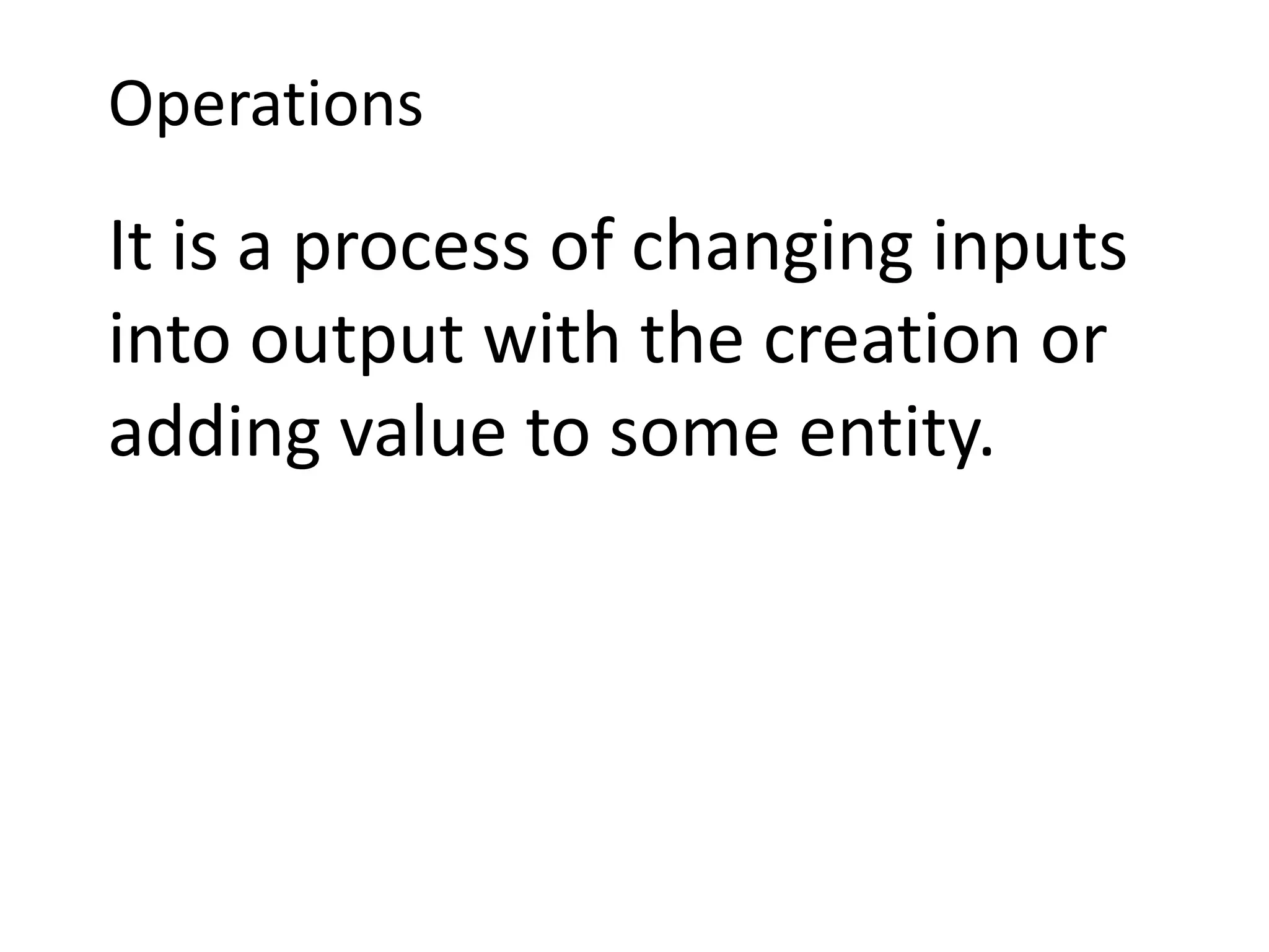 Operations involve converting inputs into outputs through value-adding processes. This includes integrating or disintegrating materials, providing services, or combining elements. Operation management deals with designing, running, and improving these production systems to deliver the desired products and services at the right quality, quantity, time, and cost. Key decisions involve determining what to produce, when, where, and how, as well as allocating necessary resources. Responsibilities include planning capacity and processes, controlling inventory and quality, organizing the work structure, staffing roles, and directing activities like scheduling and incentives.