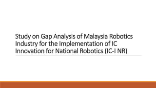 This document summarizes a study on analyzing gaps in Malaysia's robotics industry to inform the implementation of a national robotics initiative. The study involved: