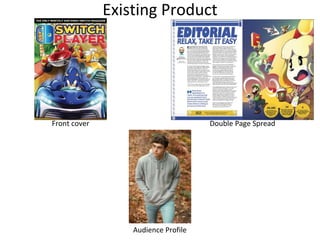 This document analyzes existing magazine covers targeting different audiences. It summarizes the key techniques used in each magazine cover to attract their target markets. For example, the fishing magazine uses short descriptive blurbs on the front cover that will appeal more to older men who want to read rather than look at pictures. It also features an interesting background scene related to fishing that may intrigue customers. In general, the magazines analyzed use bright, bold colors and headlines to catch readers' attention and include relevant information for their target demographics on the front covers.