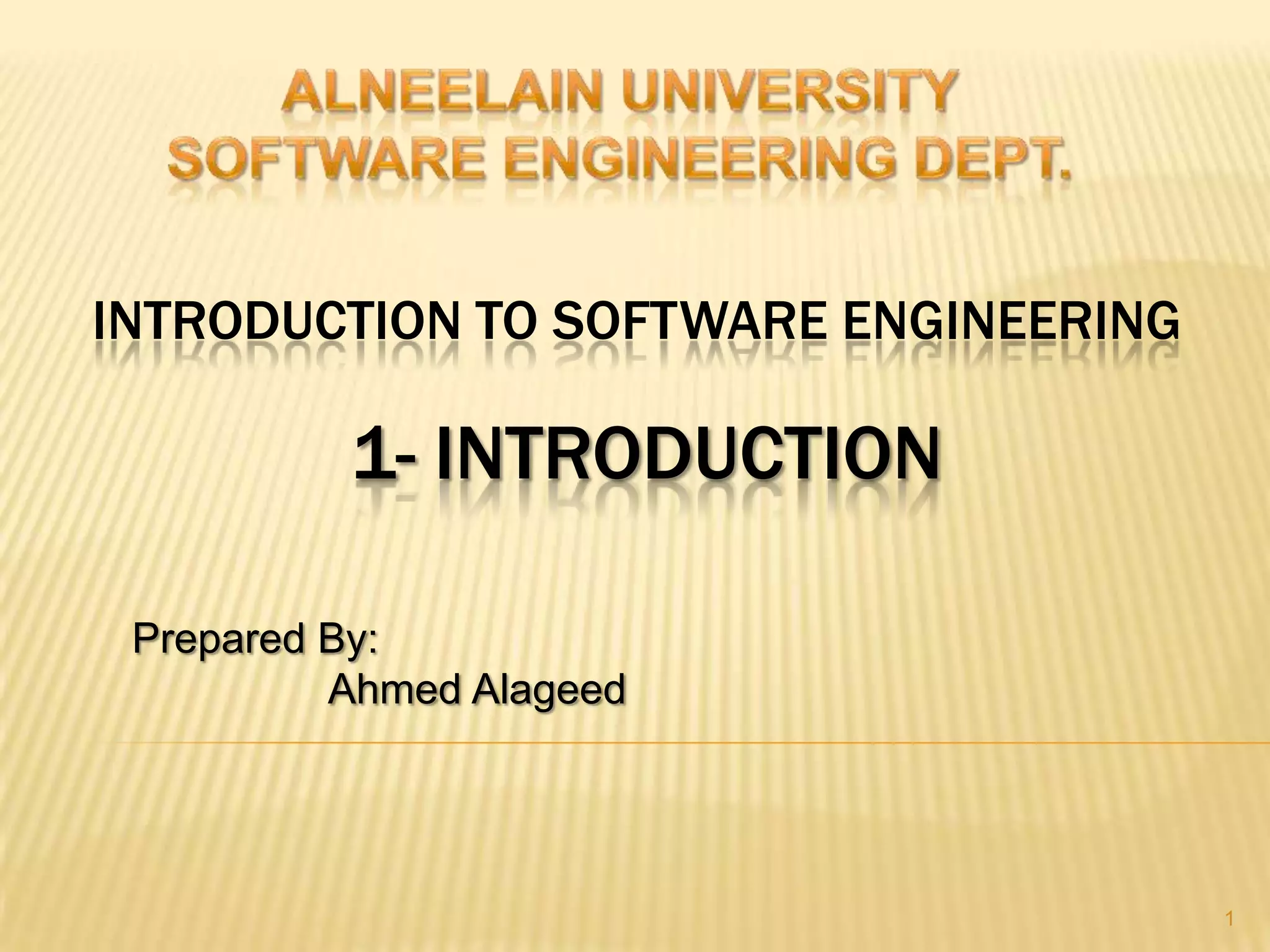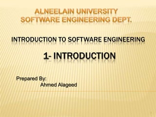 This document provides an introduction to a software engineering course. It outlines the topics that will be covered, including software processes, requirements, design, coding, testing, and project management. It describes the learning objectives of explaining software engineering principles and techniques for developing quality software. Students will be assessed through exams, presentations, and laboratory work. References for further reading are also provided.