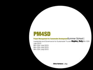 This document summarizes information about the PM4SD methodology for project management focused on sustainable tourism. PM4SD combines traditional project management techniques with principles of sustainable tourism to create long-term benefits for destinations and communities. It describes the PM4SD certification process, list of training courses and organizations that have adopted PM4SD, as well as opportunities to get involved with the PM4SD community.