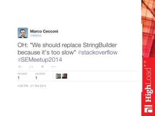 Cnvm/[($_<=>int$b)+1];$a=~y/a-zA-Z/b-zaB-ZA/;print $a'](https://image.slidesharecdn.com/1-160115120120/85/Stack-Overflow-It-s-all-about-performance-Marco-Cecconi-Stack-Overflow-74-320.jpg)