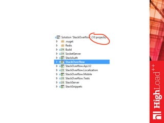 The document outlines recent growth and improvements of the Stack Exchange network, including a 15% increase in sites and a rise in visitor rank. It discusses the development workflow, emphasizing the importance of quick iterations and feature deployments, as well as addressing technical challenges such as caching and dependency injection. Key takeaways highlight the necessity of performance and adaptability in the development process.