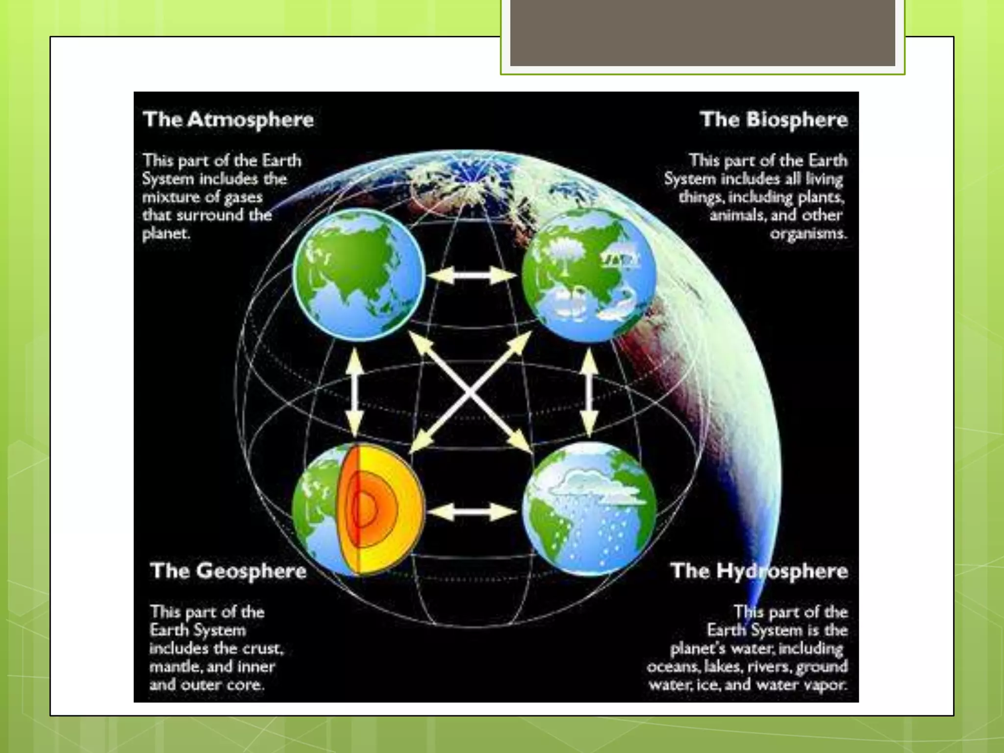 Earth is composed of several layers including a crust, mantle, and core. The crust is the thin, solid outermost layer made up of both oceanic and continental crust. Beneath the crust is the mantle, which makes up two-thirds of the Earth's mass and is able to move through convection currents. At the very center is the core, which has both a solid inner core and liquid outer core. The Earth has unique characteristics including liquid water and oxygen in its atmosphere that support life.