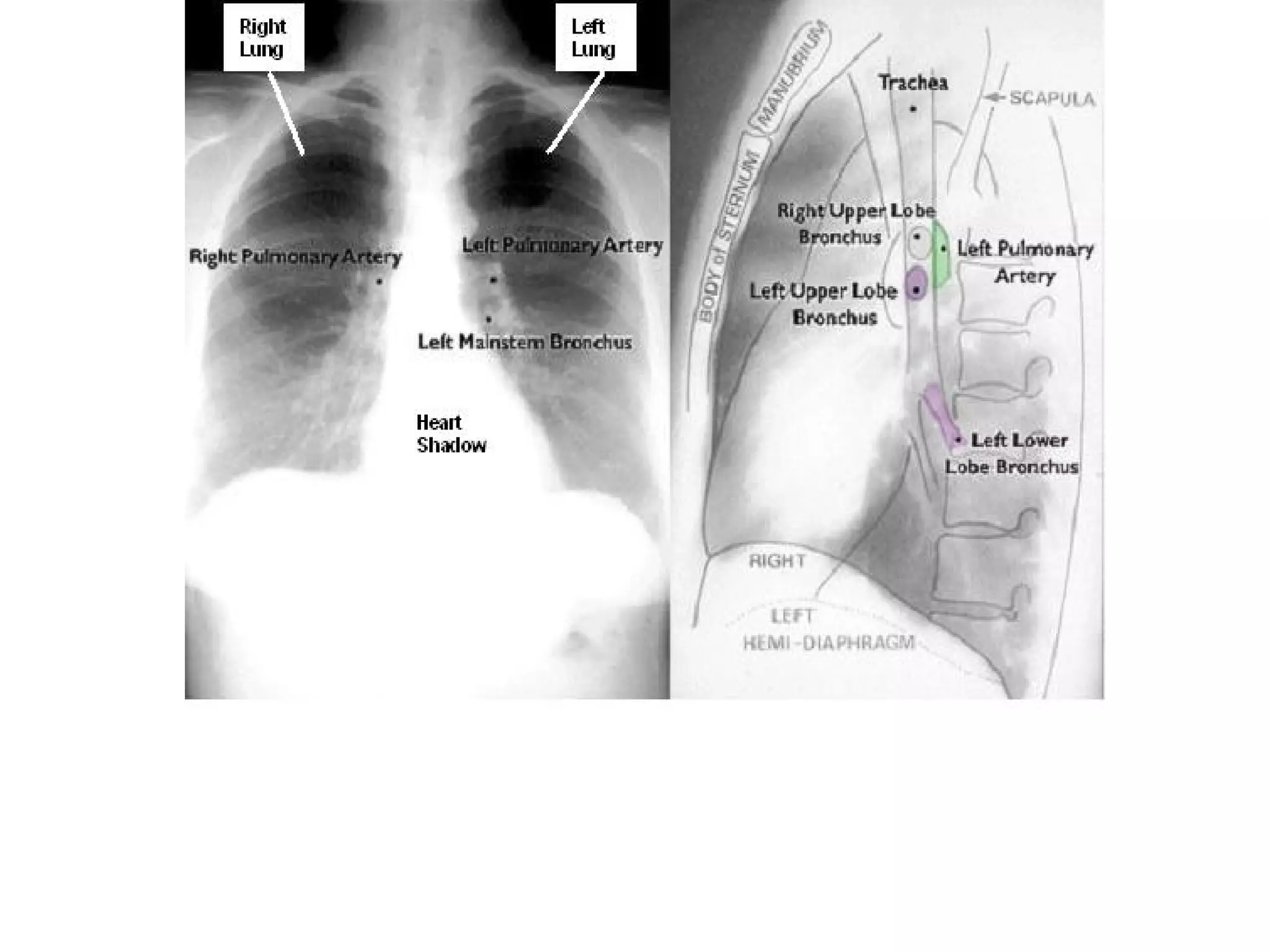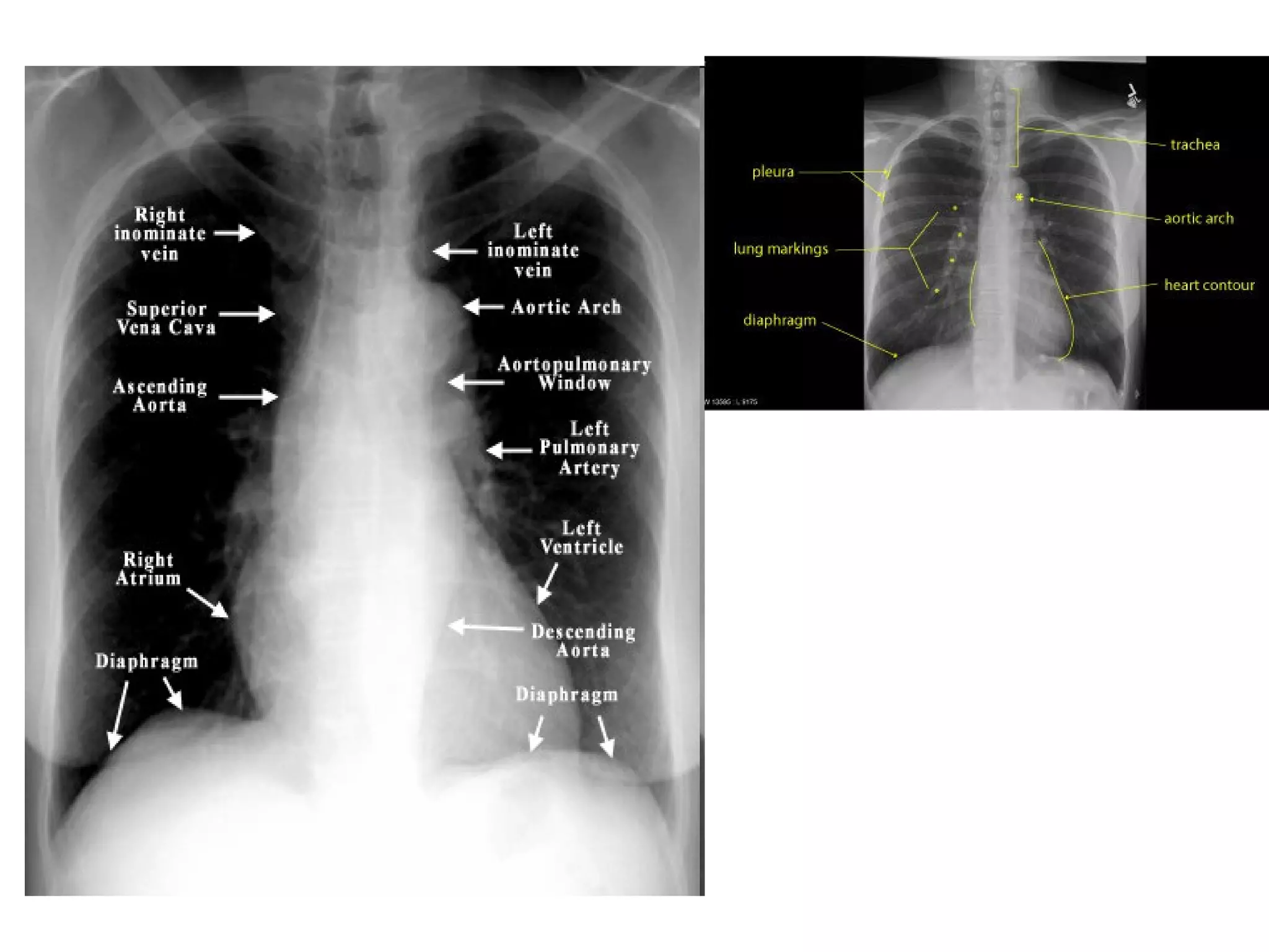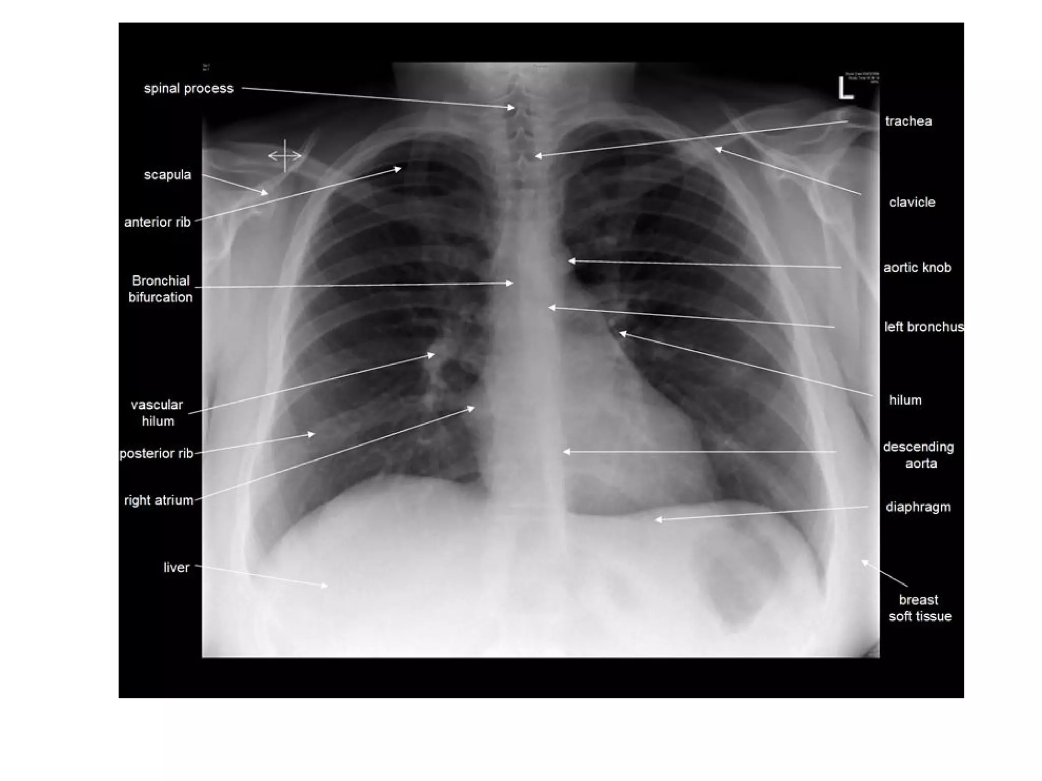 2. The mediastinum, heart, diaphragm, lungs, bones, and soft tissues are identified and their normal appearances discussed.
