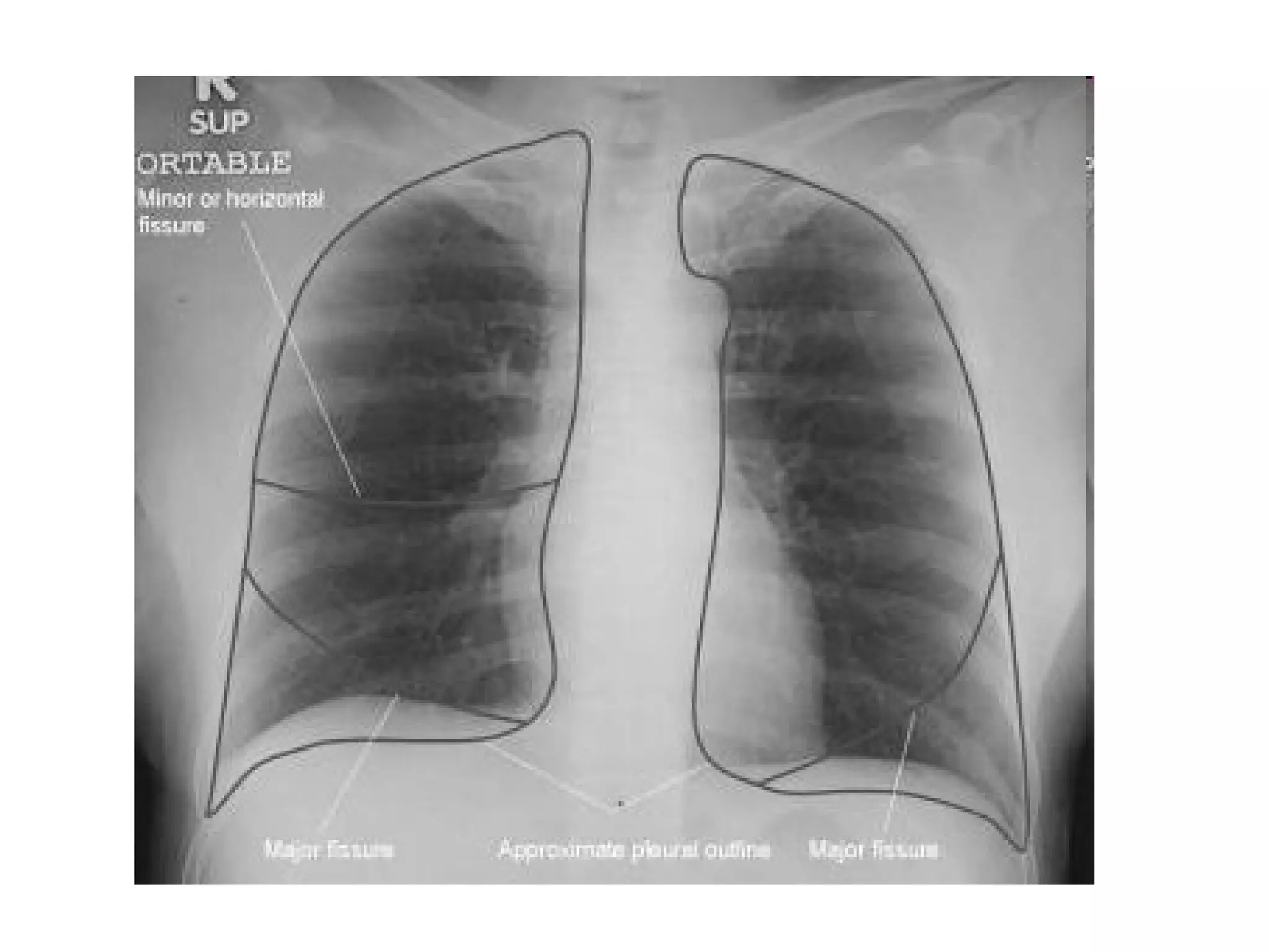 This document provides an overview of how to view and interpret a normal chest x-ray (CXR) and discusses some key radiological concepts: