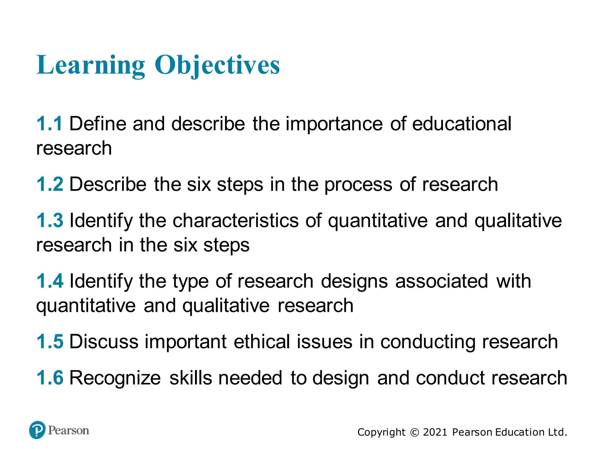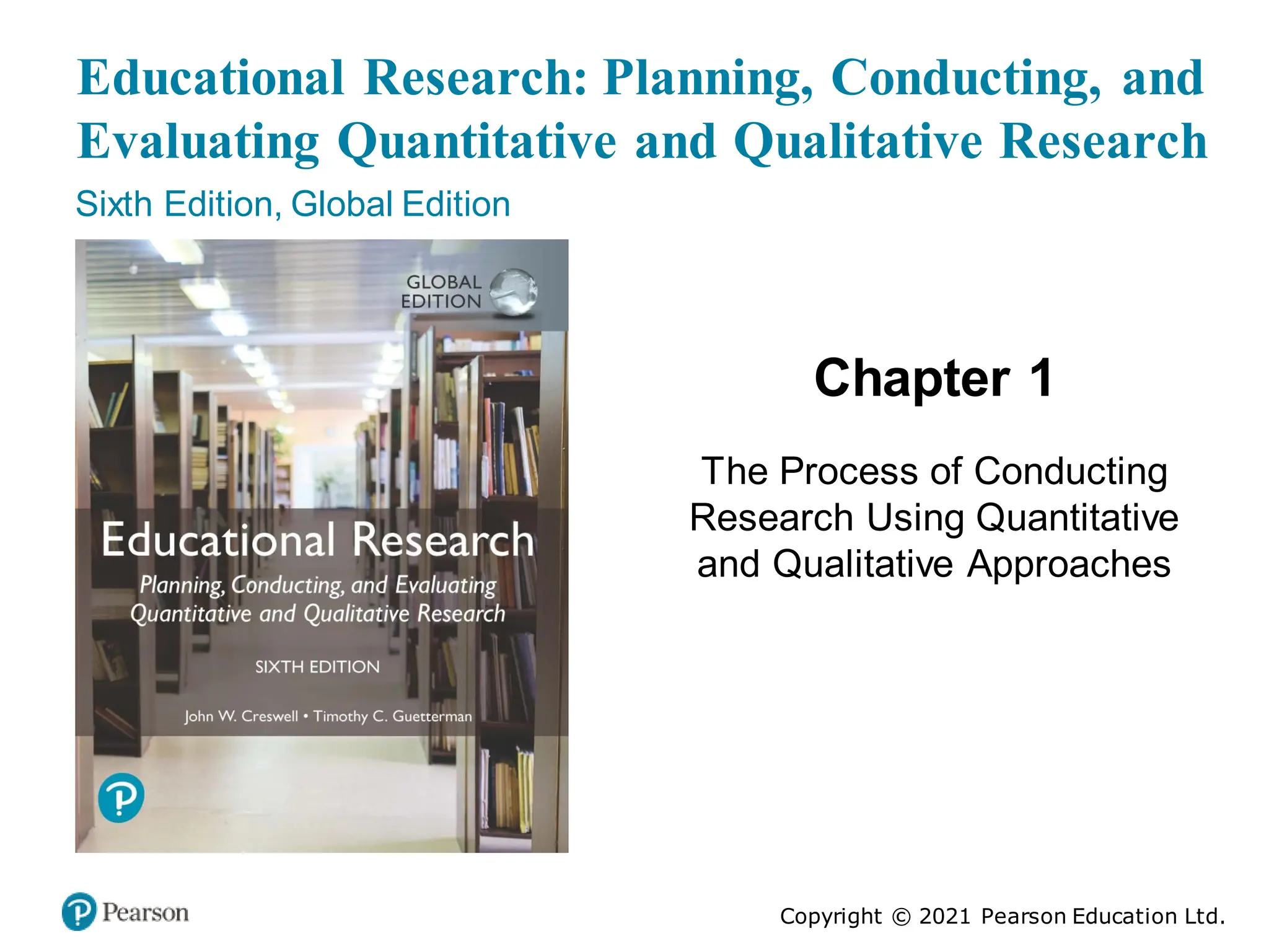 The document outlines the process of conducting educational research, emphasizing the importance of both quantitative and qualitative approaches through six key steps: identifying the research problem, reviewing literature, specifying research purposes, collecting data, analyzing data, and reporting research. It discusses the significance of research in enhancing knowledge, improving educational practices, and informing policy debates, while also addressing challenges such as contradictory findings and ethical considerations. Finally, it contrasts quantitative and qualitative research characteristics, highlighting their similarities and differences, and emphasizes the skills necessary for effective research.