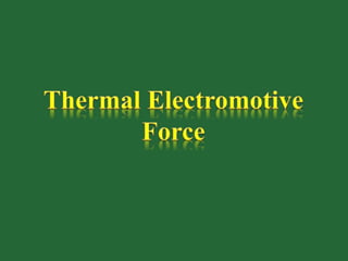 Thermal electromotive force (EMF) is generated when dissimilar metals touch, creating a small voltage. The thermoelectric effect directly converts temperature differences into voltage and vice versa. Specifically, the Seebeck effect produces a voltage when two different conductors or semiconductors have a temperature difference at their junction, proportional to the temperature difference. This physical principle is used in thermocouples for temperature measurement. The Peltier effect involves heating or cooling at the junction of two conductors when an electric current passes through.