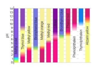 Titration is a technique used to determine the concentration of an unknown substance by reacting it with a known quantity of a titrant. The equivalence point occurs when stoichiometric amounts of the reactants have reacted. An indicator is used to identify the endpoint, which may differ from the equivalence point. The pH at the equivalence point provides information about whether a strong acid/base or weak acid/base reaction took place.