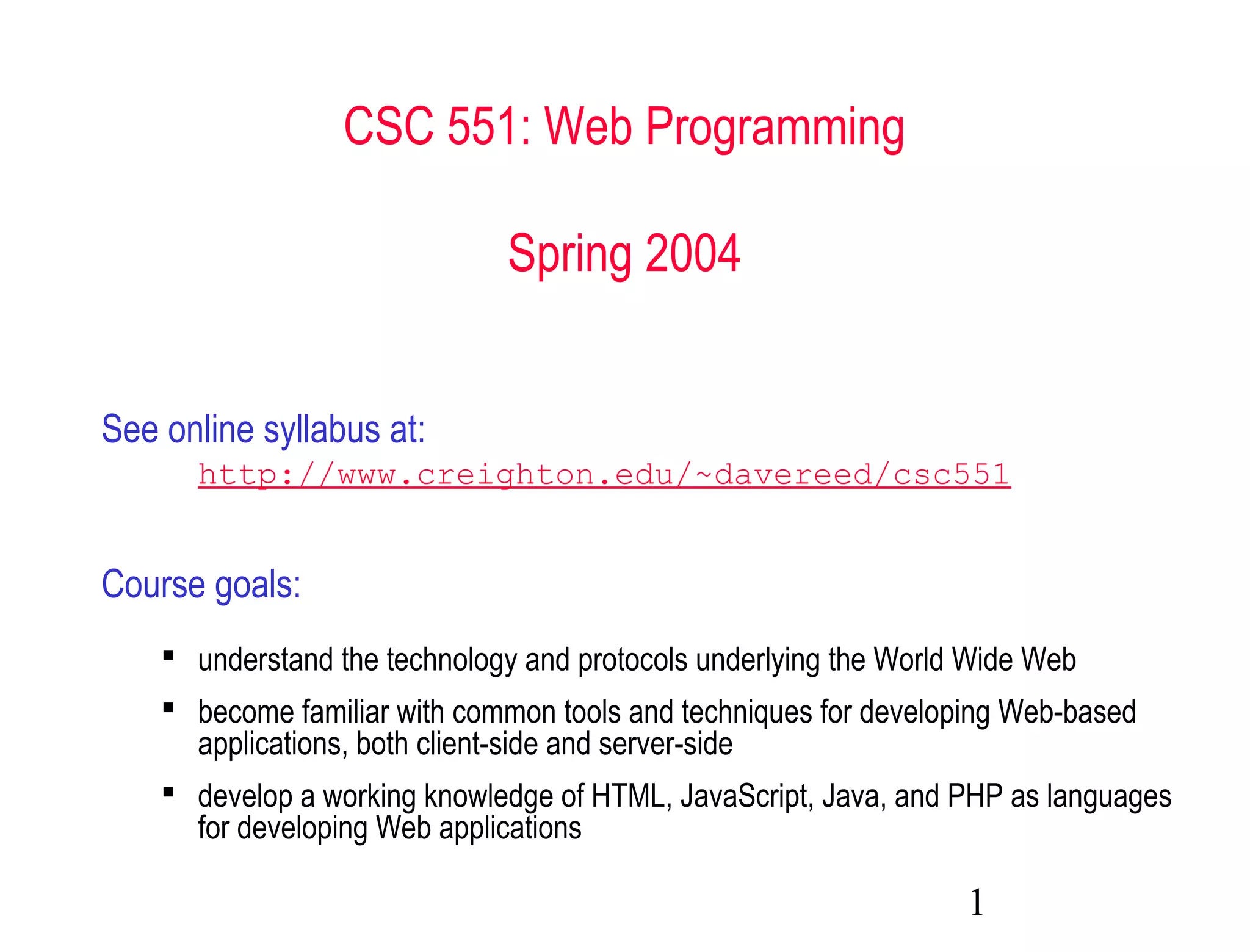This document provides an overview of a Web Programming course, including its goals of understanding Web technologies, tools for developing client-side and server-side applications, and languages like HTML, JavaScript, Java, and PHP. It then discusses the history and growth of the Internet and World Wide Web, distinguishing between the two. Finally, it covers static and dynamic Web pages, and client-side programming using JavaScript and Java applets versus server-side programming using CGI, ASP, and PHP.