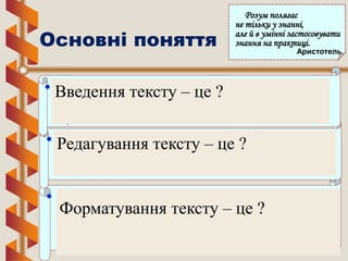 • Введення тексту - це набір тексту на