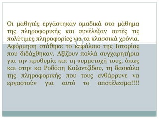 που διδάχθηκαν. Αξίζουν πολλά συγχαρητήρια