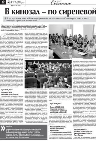 Документ описывает культурные события в Волгограде, включая премьеры балета 'Лебединое озеро' и кинофестиваля 'Сталинградская сирень'. Премьера балета была успешной и положительно воспринята зрителями, а кинофестиваль привлек множество участников и зрителей, предлагая доступ к фильмам о войне. Обе события подчеркнули важность культурной жизни региона и стремление к продвижению искусства.