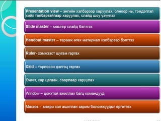 - Design Template (*.pot) - Илтгэлийн загвар