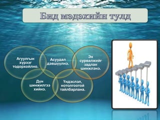 Агуулгын хүрээг тодорхойлно. Дүн шинжилгээ хийнэ. Асуудал дэвшүүлнэ. Үндэслэл, нотолгоотой тайлбарлана. Эх сурвалжийг задлан шинжлэнэ.