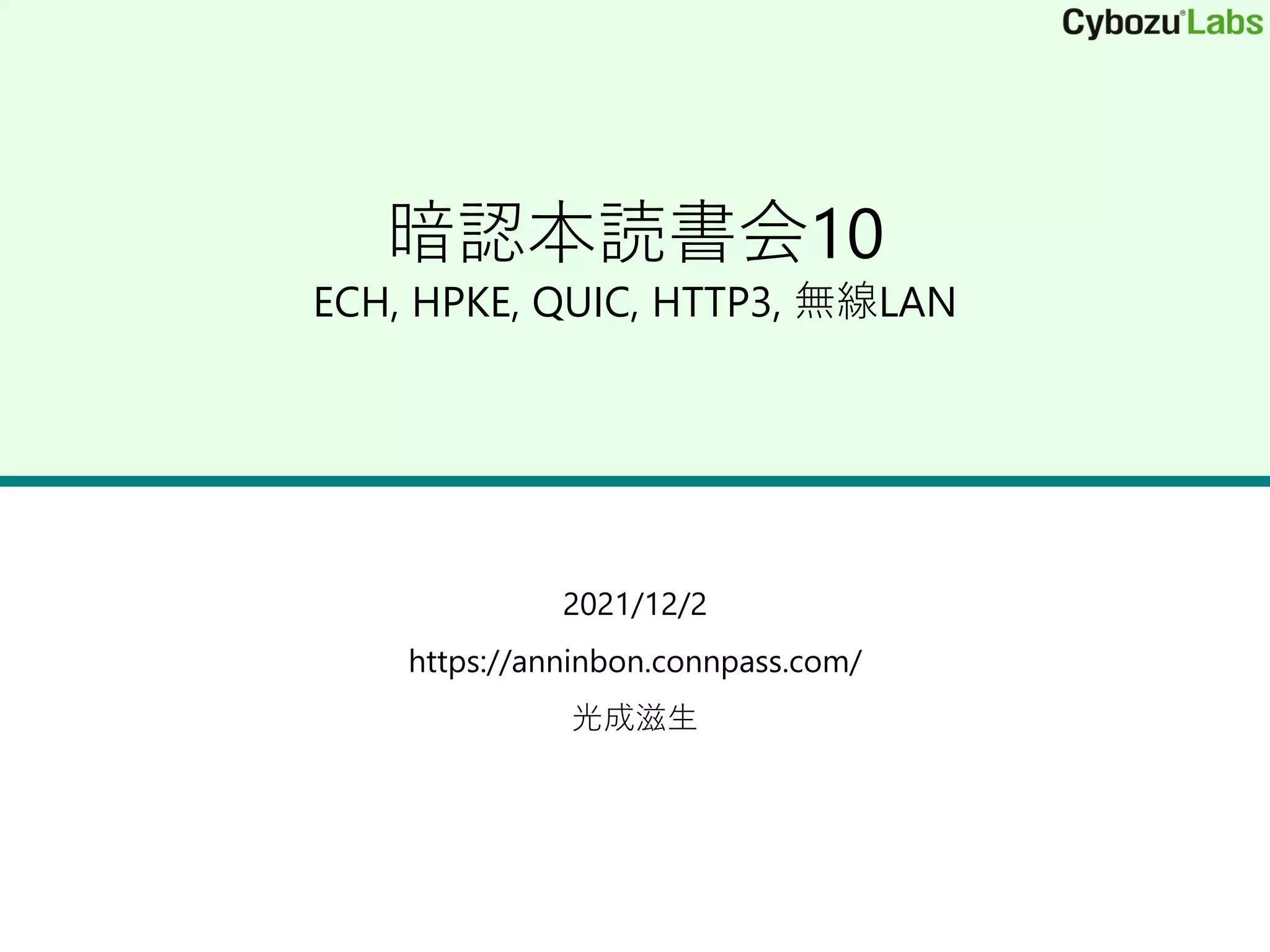 https://anninbon.connpass.com/ ECH, HPKE, QUIC, HTTP3, 無線LAN
