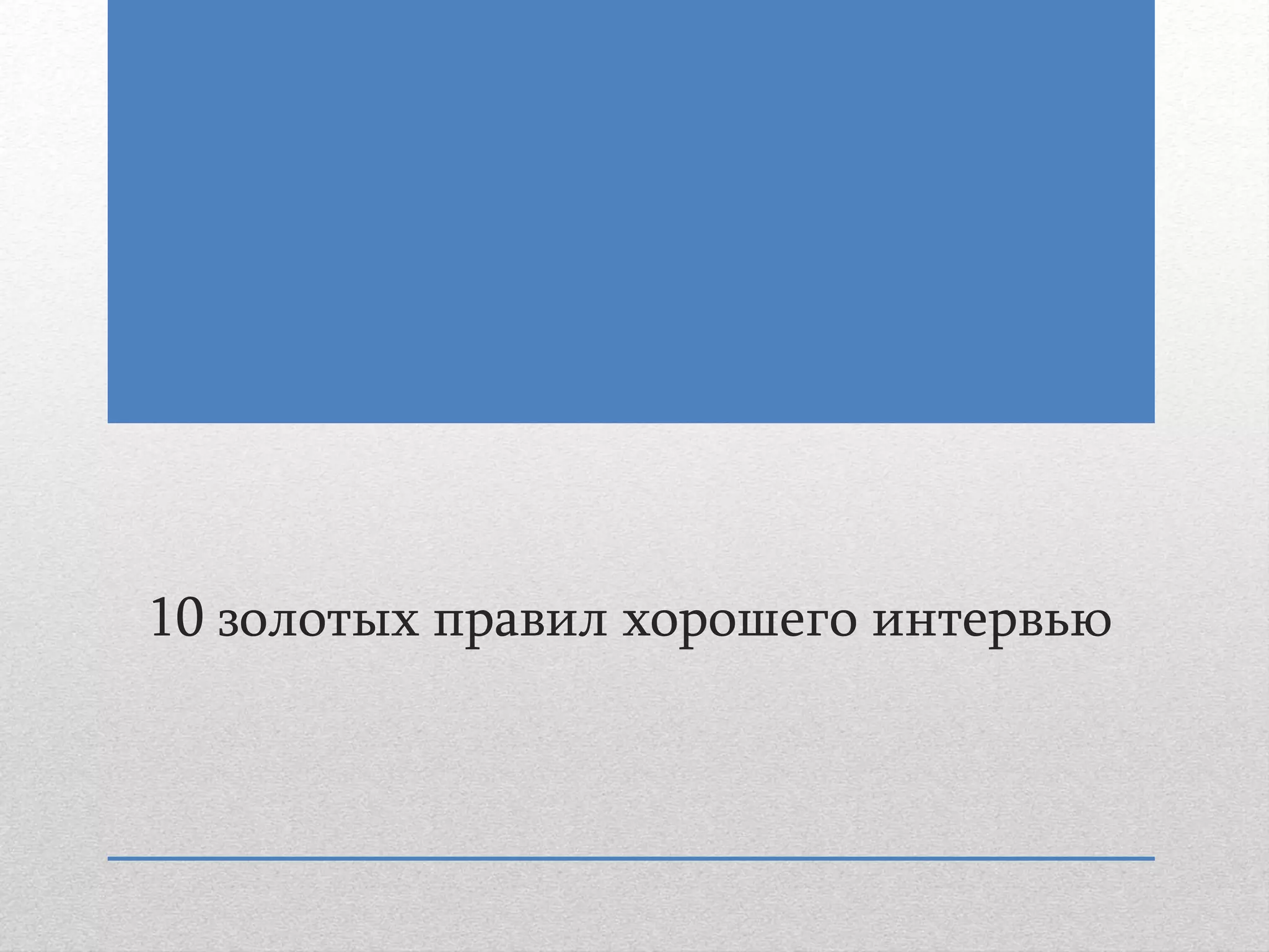 Документ изложен в виде 10 правил, которые помогут провести успешное интервью, подчеркивая важность подготовки вопросов и целенаправленности. Основные рекомендации включают избегание стандартных и сложных вопросов, создание драматургии и интересного общения с гостем. Также отмечается необходимость согласовать вопросы заранее и закончить интервью блиц-вопросами для повышения интереса.