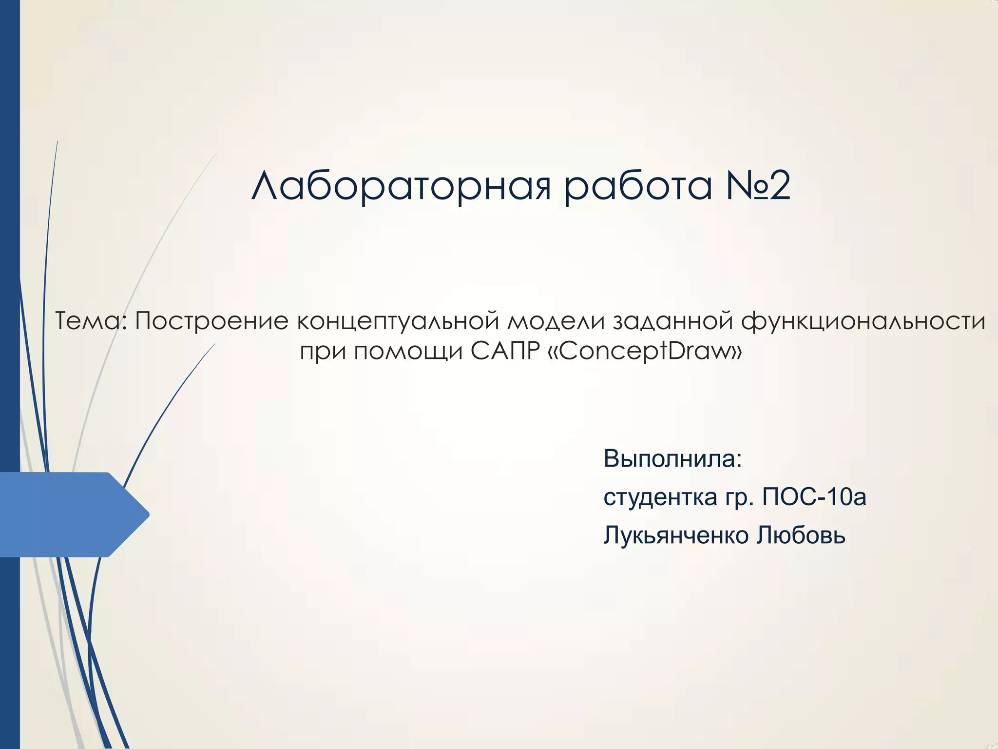 Документ представляет собой лабораторную работу по созданию концептуальной модели компьютерной системы с использованием программы ConceptDraw. Основной акцент сделан на разработку 2D графического интерфейса в стиле Minecraft, который включает элементы управления, такие как плитки и карманы для взаимодействия с игровым полем. Описаны действия пользователей, механика навигации и оформление интерфейса, включая использование различных фонов и форматов плиток.