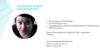 Документ содержит советы по улучшению контекстной рекламы, включая оптимизацию целевых страниц и применение модификаторов широкого соответствия для повышения CTR. Рассматриваются методы взаимодействия с аудиторией, такие как использование динамических заголовков и вопросительных формулировок для увеличения кликов. Также упоминается важность качества контента и навигации на сайте для успешной рекламной кампании.
