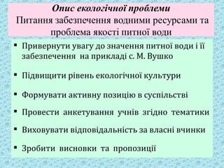 Опис проектної ідеї "Розвиток системи водопостачання Верхньодніпровського рай...
