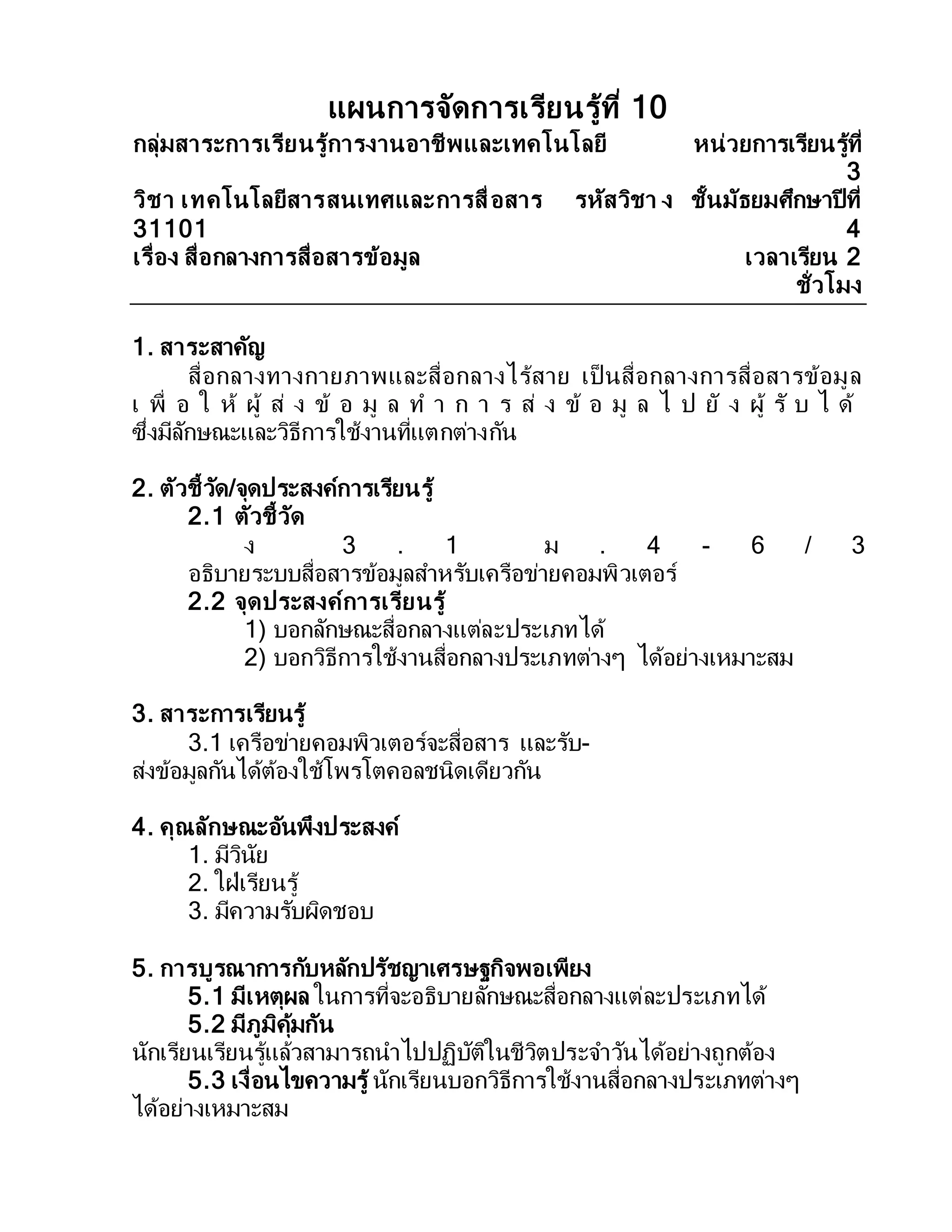 แผนการสอน ระบบเครือข่าย ม.3 DOC