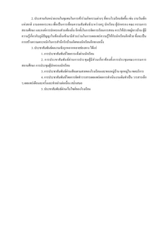 2. ประสานกับหน่วยงานในชุมชนในการเข้าร่วมกิจกรรมต่างๆ ที่ทางโรงเรียนจัดขึ้น