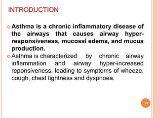 This document provides an overview of asthma, including: