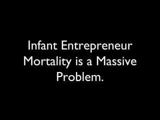 Over 600,000 companies fail annually in the U.S., highlighting the issue of high entrepreneur mortality. The document outlines ten avoidable mistakes that first-time entrepreneurs often make, such as misdefining success and failing to validate their product. The 1M/1M program emphasizes learning essential techniques to survive and succeed in entrepreneurship and offers free mentoring sessions.