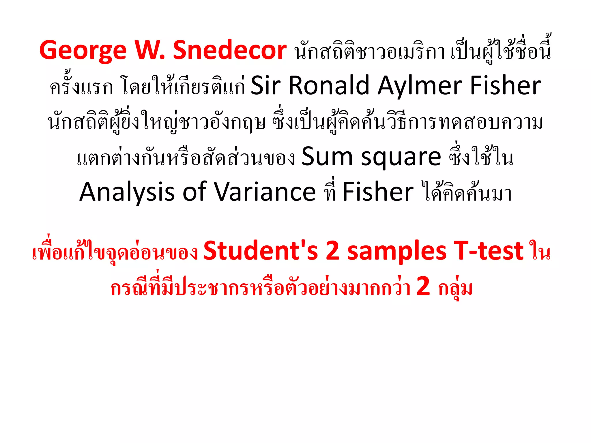 Analysis of Variance ที่ Fisher ได้คิดค้นมา
