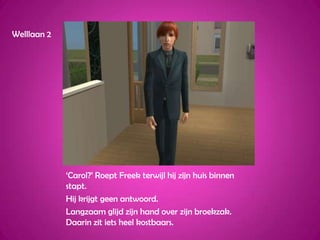 Welllaan 2‘Carol?’ RoeptFreek terwijl hij zijn huis binnen stapt.Hij krijgt geen antwoord.Langzaam glijd zijn hand over zijn broekzak. Daarin zit iets heel kostbaars.