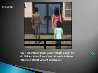 Rijksweg 1 ‘En,is iedereen er klaar voor?’ Vraagt Carlijn als zij, Rick en Vincent voor hun nieuwe huis staan.‘Ikke wel!’ Roept Vincent enthousiast.