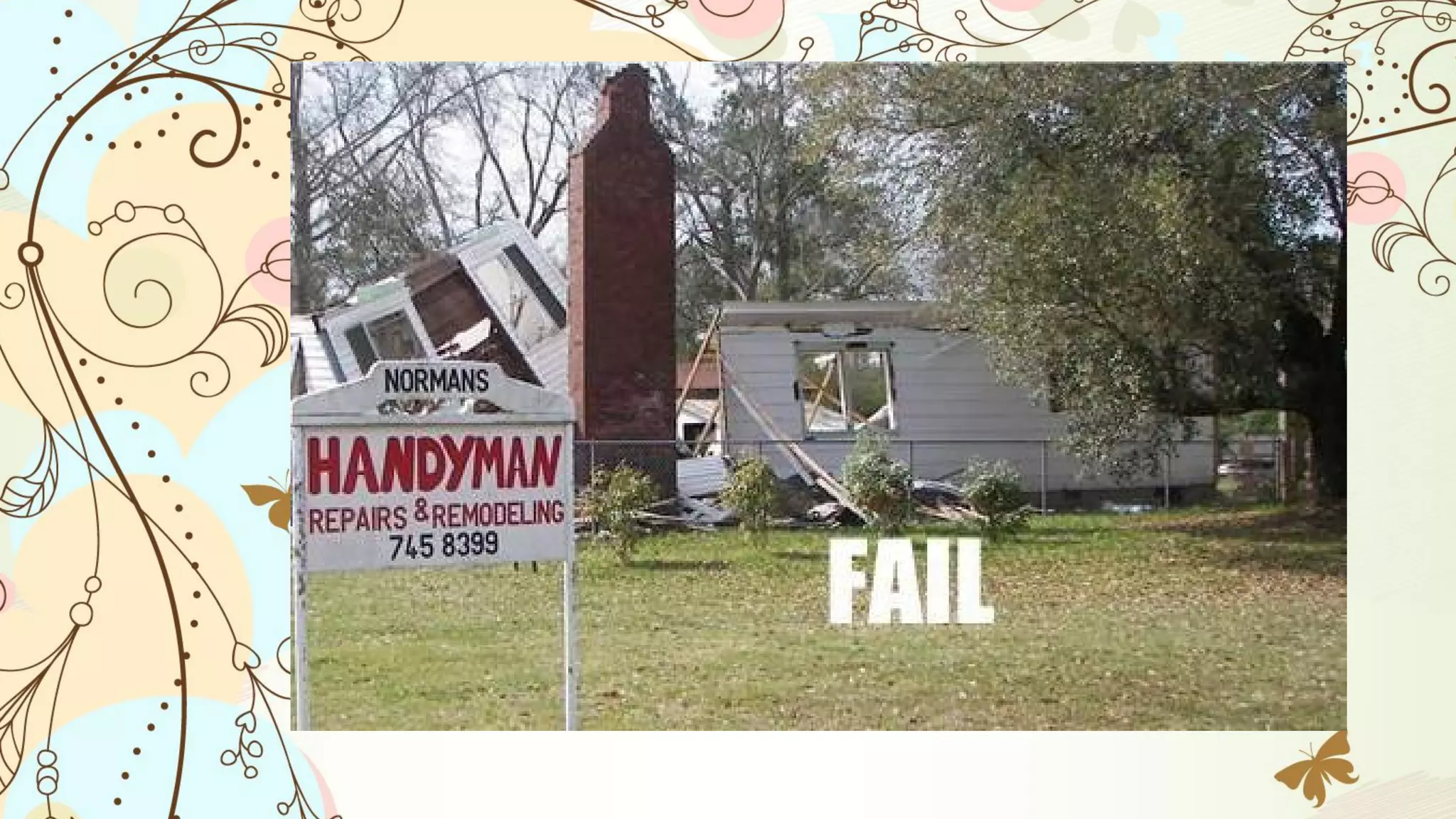 Handymen sometimes attempt DIY projects that don't go according to plan, resulting in funny fails. A website called DIY Fail collects photos of extreme handyman mistakes and bloopers, showing projects that went wrong in humorous ways. These funny fails remind us that home improvement tasks don't always turn out as expected, even for professionals.