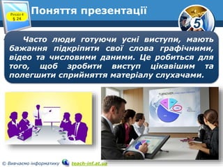 урок 24 поняття презентації. комп’ютерна презентація, її об’єкти PPTX