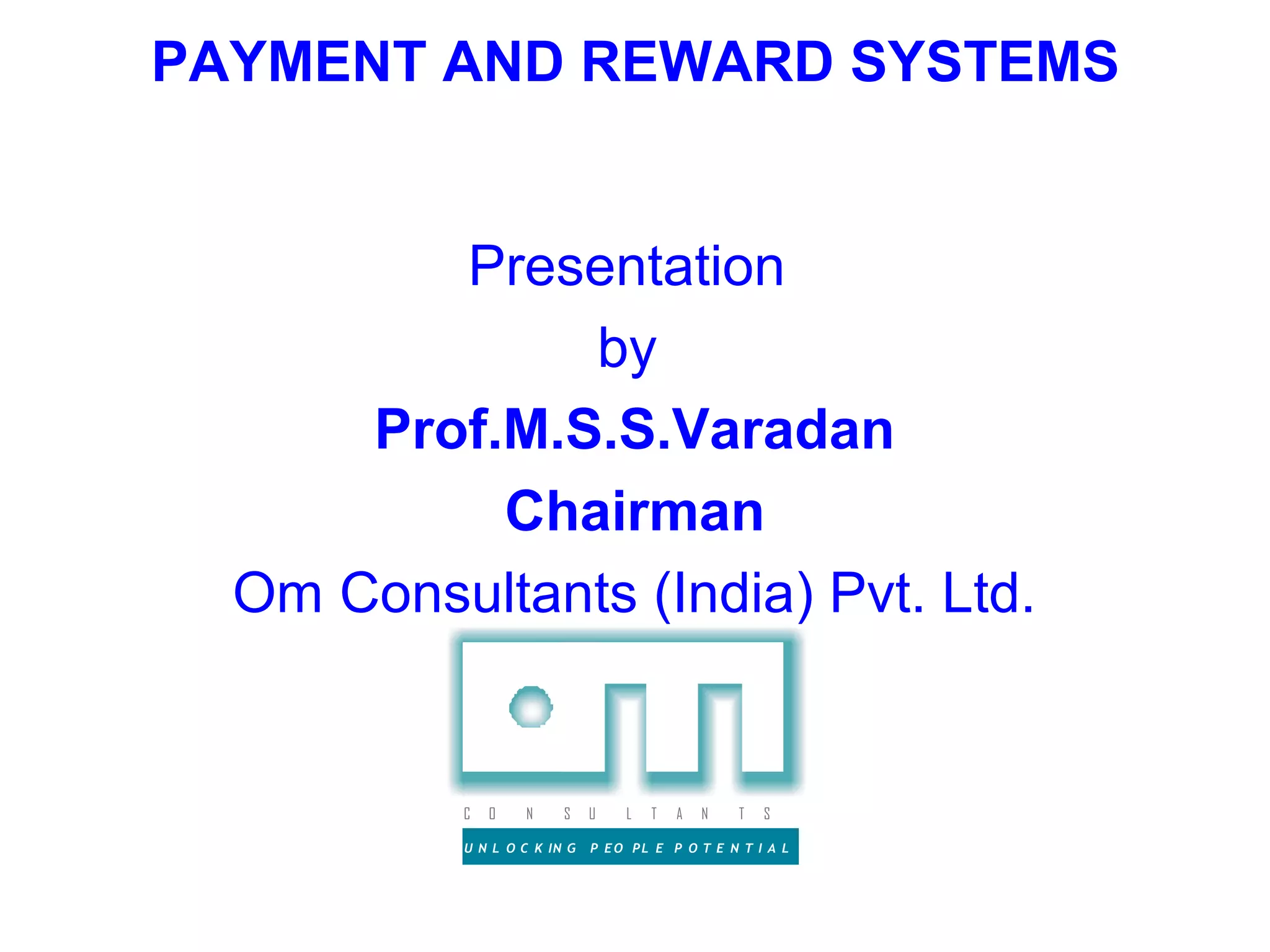 The document discusses different types of payment and reward systems. It categorizes rewards as intrinsic or extrinsic, financial or non-financial, and performance-based or membership-based. Some examples of intrinsic rewards include increased responsibility and interesting work. Extrinsic financial rewards include piece-rate pay, commissions, bonuses, and merit pay. Non-financial extrinsic rewards include preferred work assignments, parking spaces, and titles. Effective rewards are individualized, equitable, visible, flexible, and low-cost. Popular criteria for distributing rewards include performance, effort, seniority, skills, job difficulty, and discretionary time.