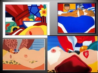 Tom Wesselmann Nascutel 1931, mor a Nova York el 2004. Els seus primers treballs van ser dins del món del còmic, però a partir dels 60 es dedica a la pintura i al collage. La seva temàtica se centra en el nu femení i en natures mortes. Les seves obres són de gran format i inclou parts pintades a modo de cartells. Entre les seves obres destaquen la sèrie dels grans nus americans i imatges dins de lavabos.