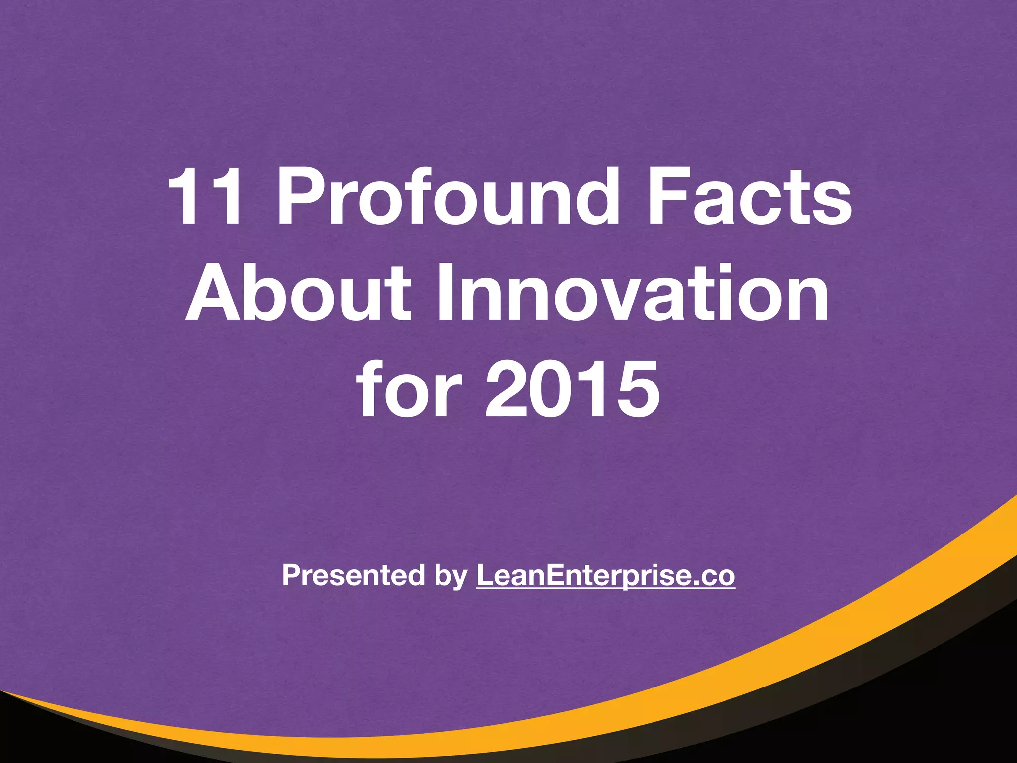 This document presents 11 profound facts about innovation for 2015. Some key points include: by 2020, over 3/4 of S&P 500 companies will be companies we have not heard of yet; 93% of executives are looking to innovation to drive growth but 81% do not believe their organizations know how to lead innovation; over the last 10 years, 40 different billion-dollar startups were founded showing the potential of new companies; and the cost to build the next Twitter is low at $160 for a course on building websites plus free hosting, showing barriers to entry are reducing.
