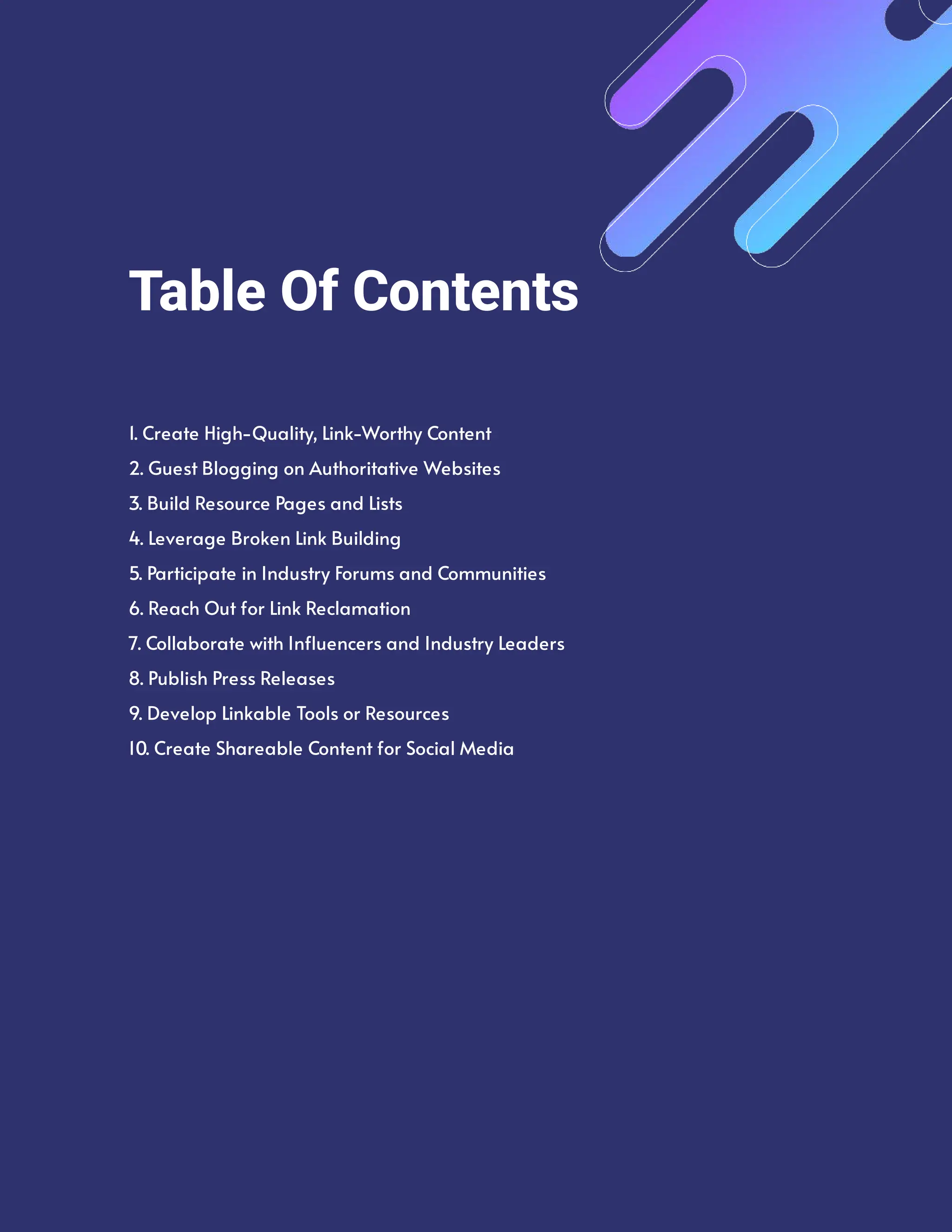 The document outlines 10 proven link building strategies to enhance a website's SEO by improving its authority, visibility, and search rankings. Strategies include creating high-quality content, guest blogging, leveraging broken links, and collaborating with influencers. The document emphasizes a strategic, ethical approach to link building that prioritizes quality over quantity for long-term success.
