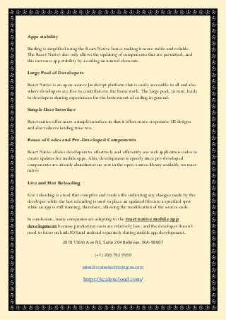 Since the instigation of React Native, mobile app development has been on an all-time rise due to its simplified and user-friendly nature. https://scalexcloud.com/reactnativedevelopmentservices/