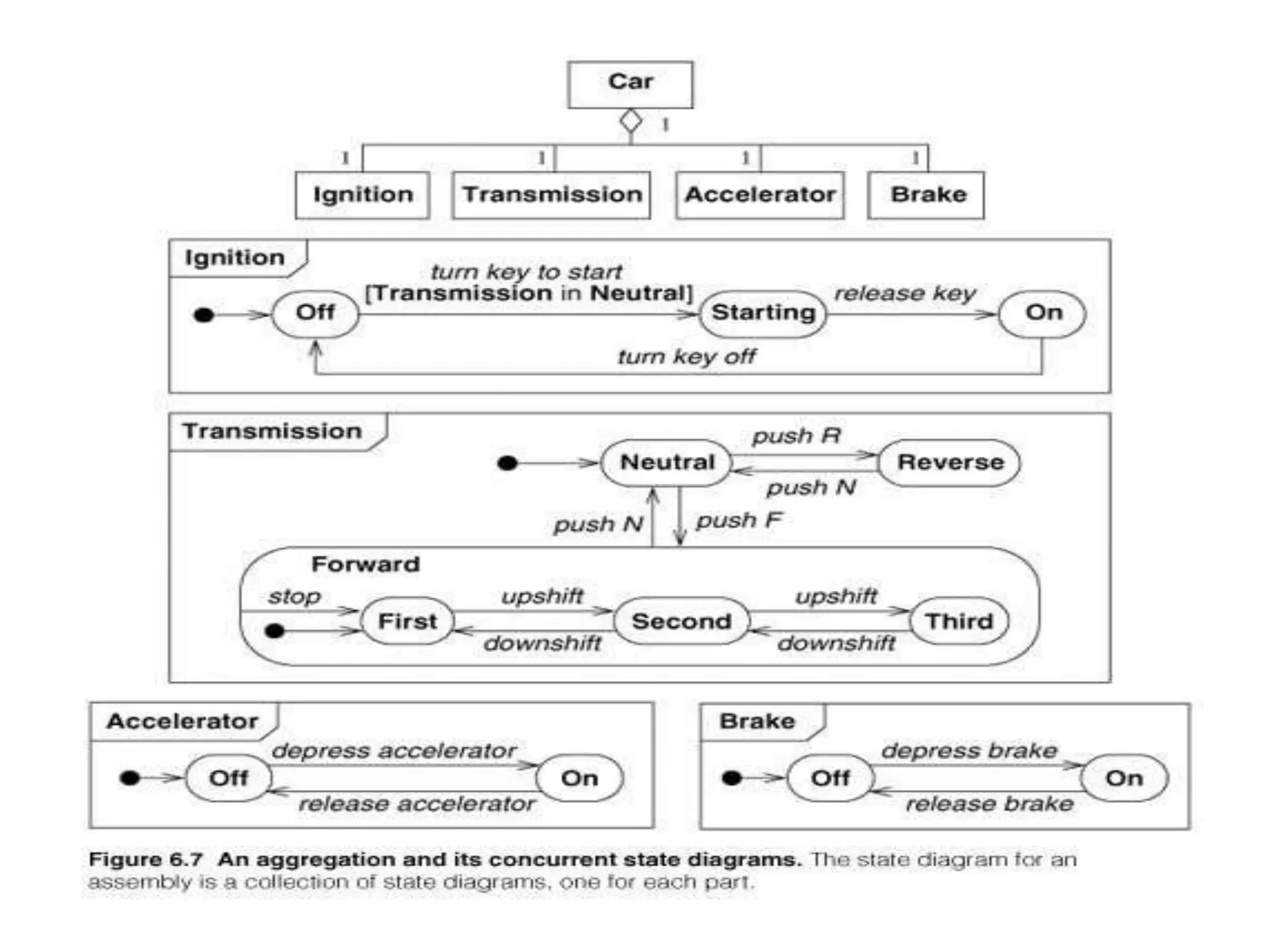 The document discusses state modeling and state diagrams. It defines states as representations of intervals of time that describe an object's behavioral condition. Events trigger transitions between states. A state diagram uses a graph to represent an object's states and the transitions between them caused by events. It specifies the object's response to input events over time. The document provides examples of how to notationally represent states, transitions, events, and other elements in a state diagram.