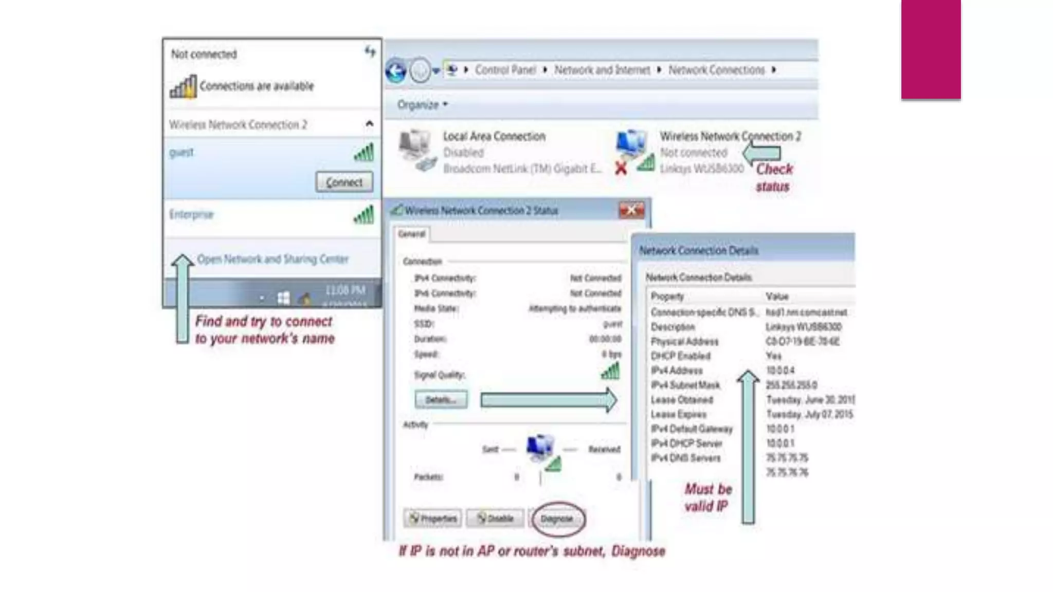 The 10 steps summarize troubleshooting steps for Wi-Fi connectivity issues: