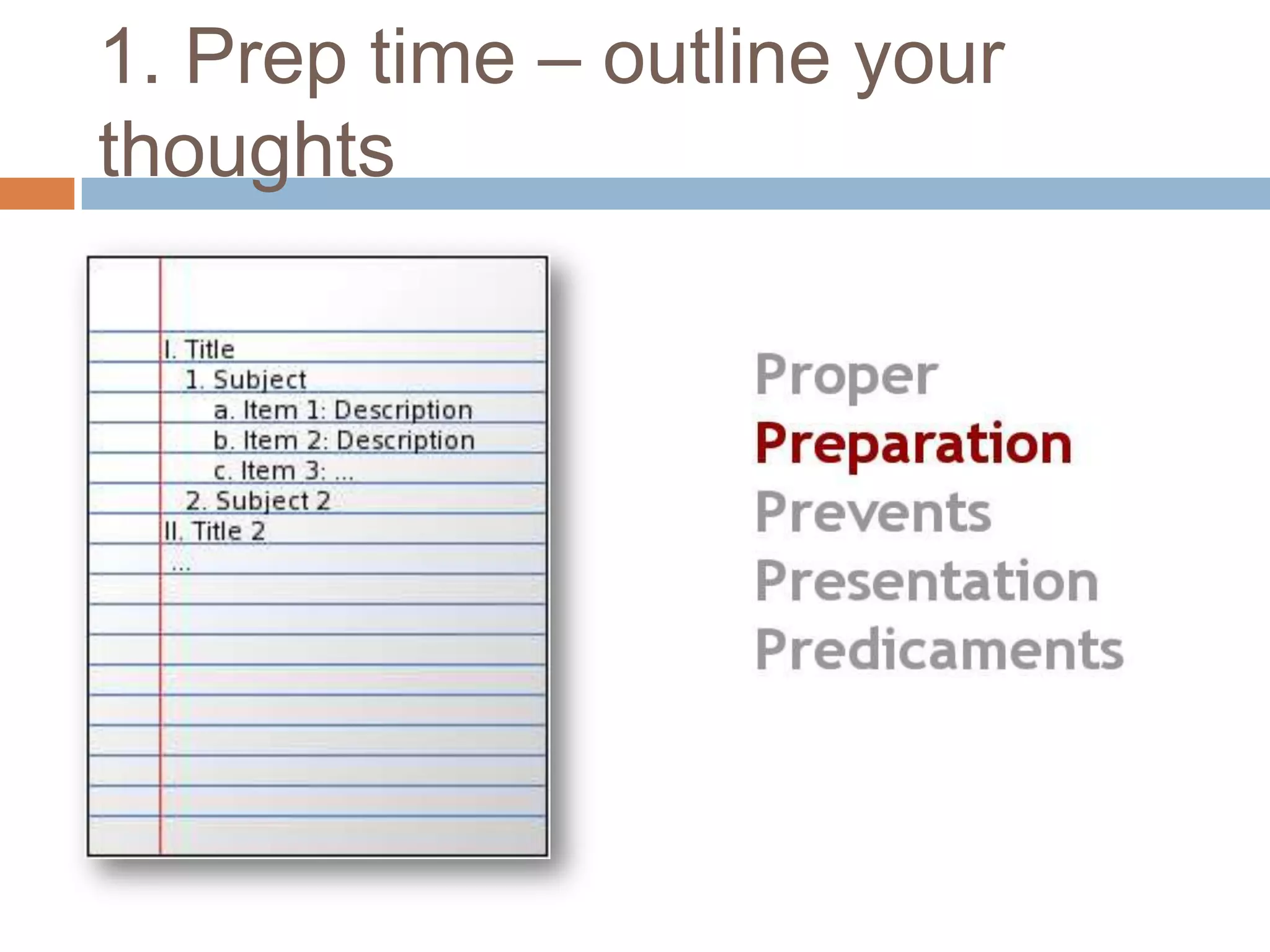 This document outlines 10 steps for crafting a great presentation: 1) Prepare an outline, 2) Keep the end goal and audience in mind, 3) Learn about the audience, 4) Incorporate stories, 5) Focus on solid content, 6) Engage the audience, 7) Keep the message concise, 8) Conduct research using authoritative sources, 9) Provide handouts, and 10) Practice visualizing the presentation. The overall goal is to craft a presentation that engages the audience and leaves them remembering the key messages.