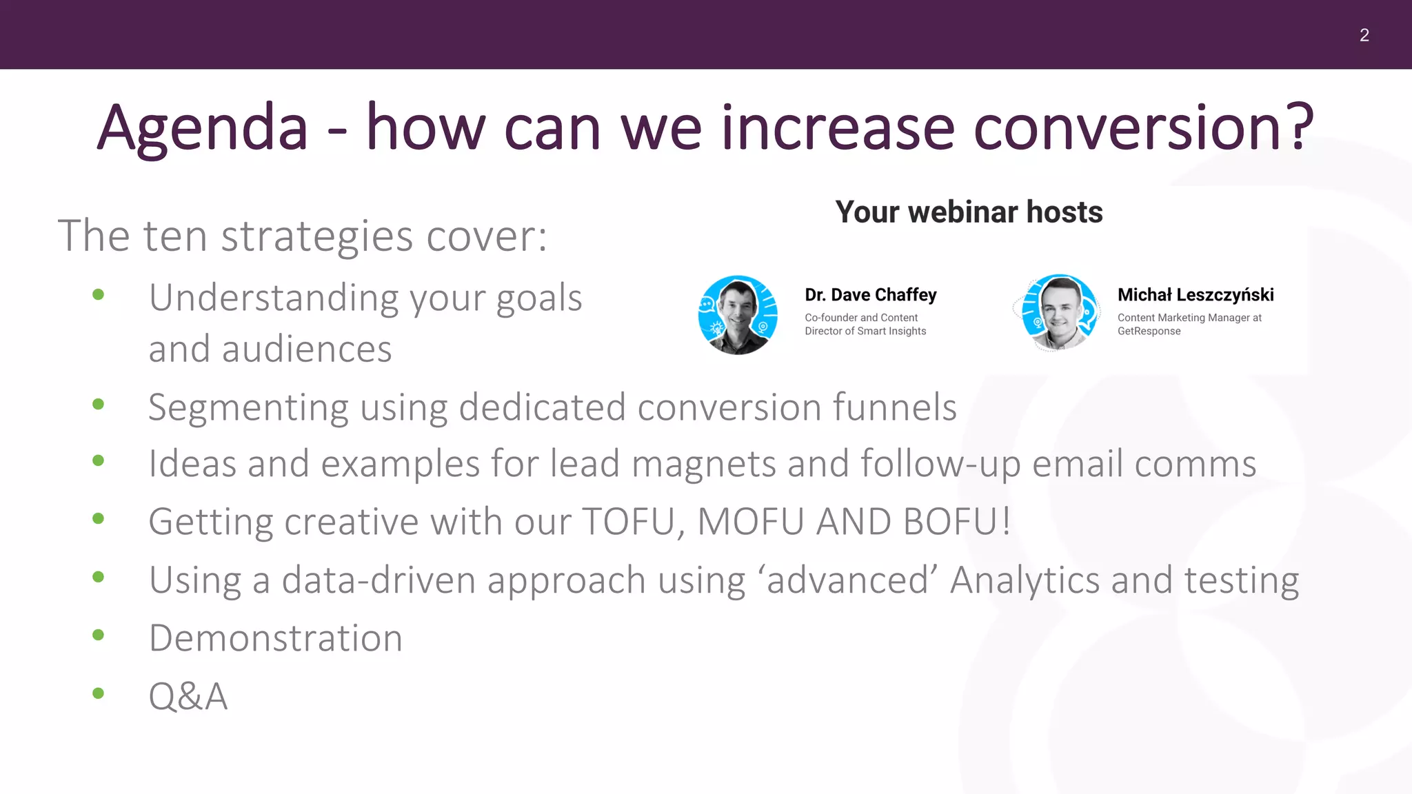 The document presents ten strategies for increasing sales through conversion funnels, emphasizing goal-setting, audience understanding, and lead magnets. It highlights using a data-driven approach with advanced analytics, different types of content for various stages of the customer journey, and the importance of email nurturing. It also includes examples and suggestions for optimizing communication and ad retargeting to improve conversion rates.