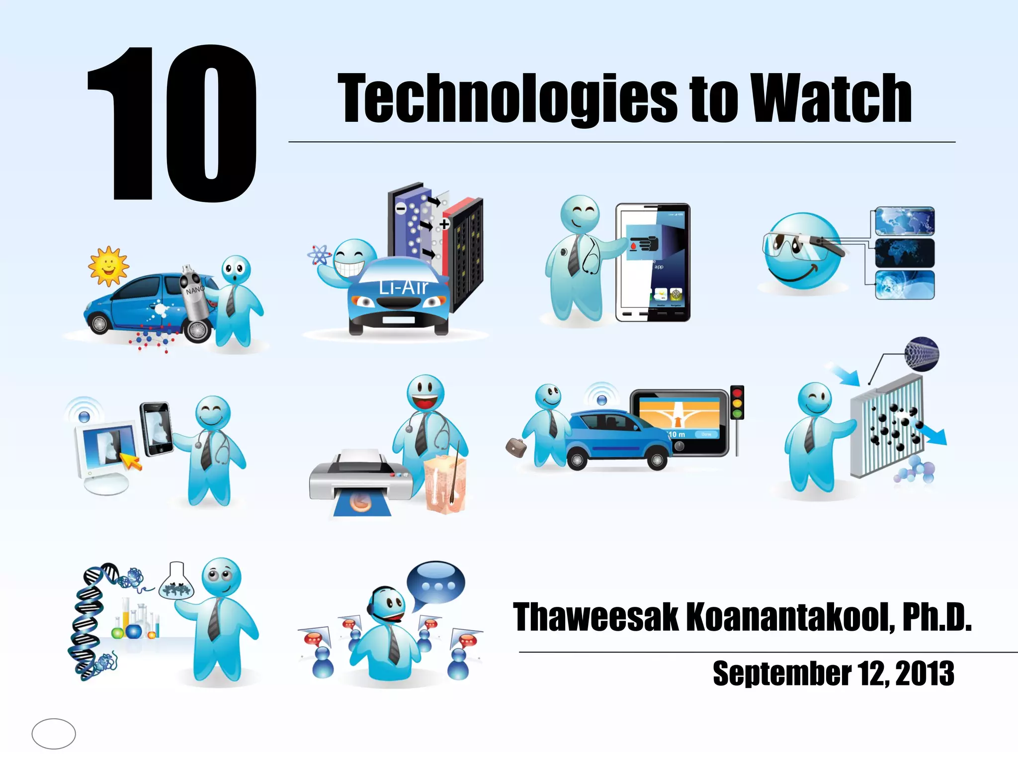 This document highlights 10 emerging technologies to watch in the future: 1) Mobile diagnostic tools, 2) Nanotheranostics, 3) 3D bioprinting, 4) V2X communication between vehicles and infrastructure, 5) Batteries for electric vehicles, 6) Social computing applications, 7) Technologies for improving future crops, 8) Metal organic frameworks, 9) Self-healing materials, and 10) Augmented reality applications. The document provides images and descriptions of each technology.