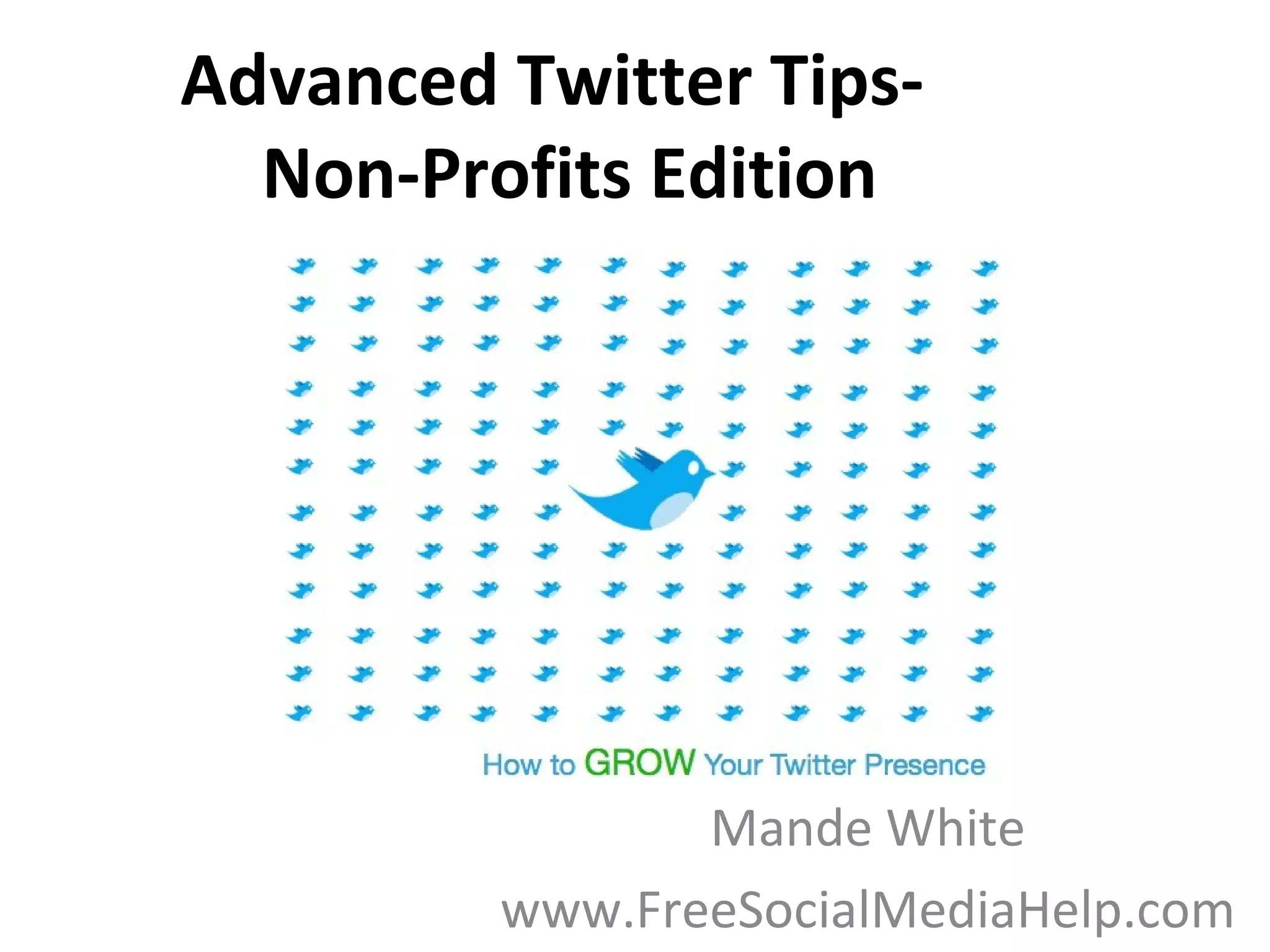 The document provides advanced Twitter tips specifically for non-profits, emphasizing the importance of engaging with donors and members, tweeting regularly, and utilizing news and community events to boost communication. It encourages organizations to be authentic, to follow relevant hashtags, and to integrate their efforts across social media platforms. Key strategies include fundraising through Twitter and actively listening to audience feedback to improve messaging and outreach.