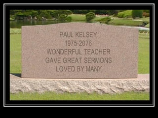 - The document concludes with questions about how one will be remembered and the impact of prioritizing God.