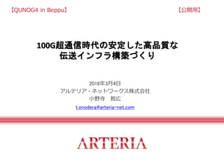 <QUNOG4発表資料> 最近100GbE回線の引き合いが多く、弊社基幹網に100G回線を伝送することが多くなった。 そんな中、今まで特に課題とならなかった事項が、100G回線では課題となったことがある。 100G超通信において、より安定した高品質な伝送インフラ構築を行うことが通信キャリアとして求められる。 そこで、弊社での構築事例をもとに100G超にも対応した伝送インフラ構築についてご紹介したい。