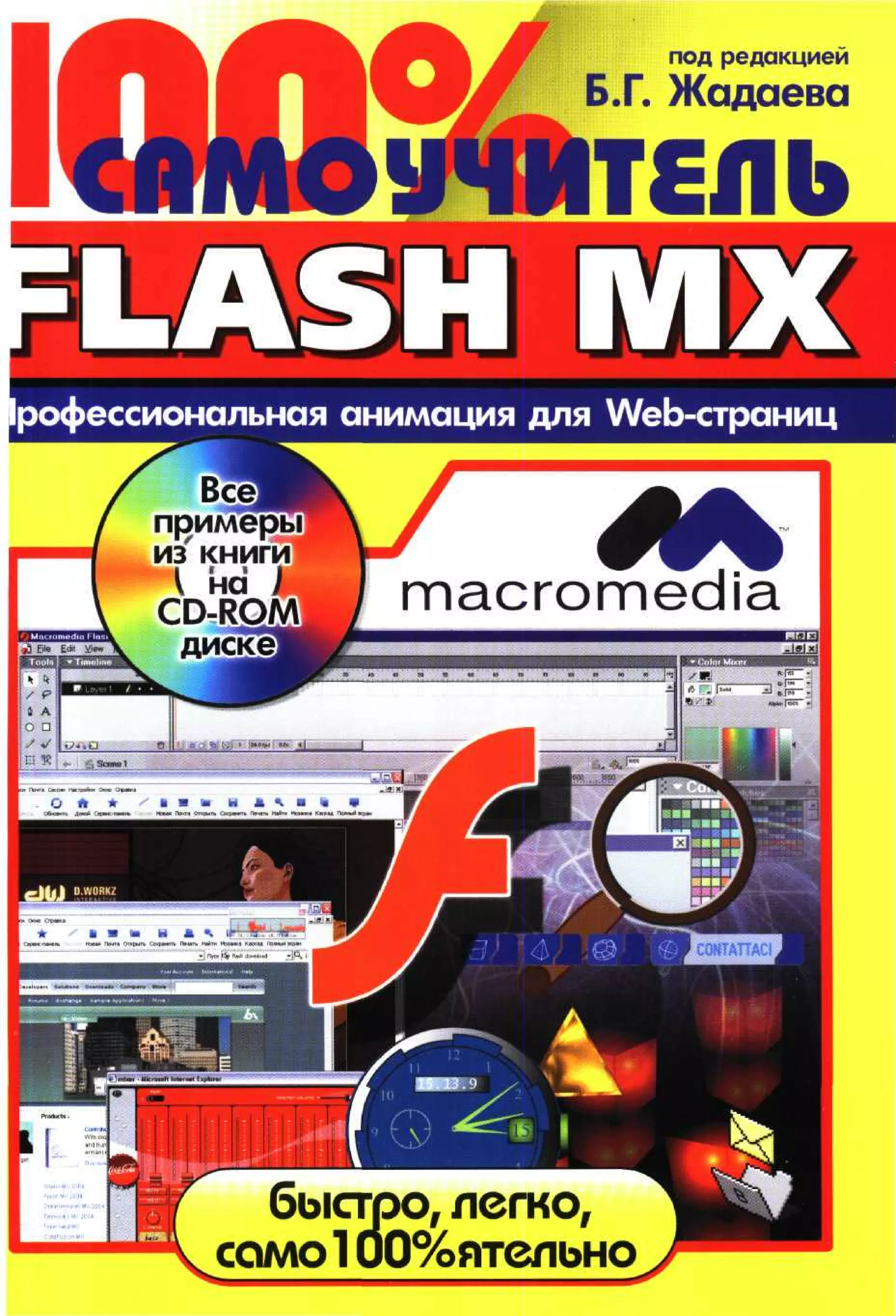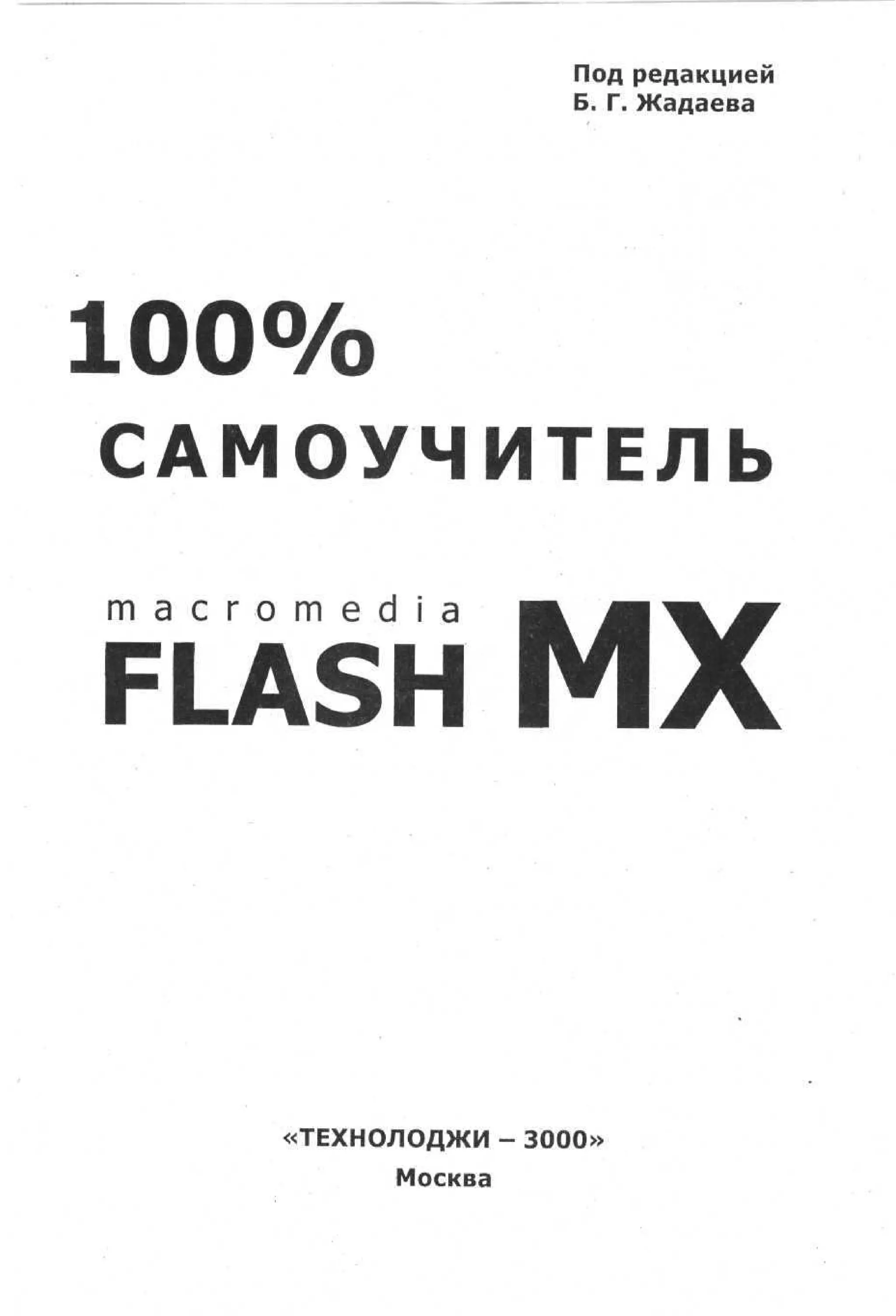Этот документ представляет собой учебное пособие по Macromedia Flash MX 2004, редактированное Борисом Г. Жадаевым. Он обучает созданию интерактивной анимации и графики, предоставляя пошаговые упражнения и примеры, а также обсуждает новые возможности программы. Включает компакт-диск с ресурсами для практики и справочные материалы по работе с графикой и анимацией.